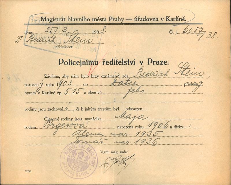 National archives Prague > Police Directorate Prague > 1941-1950 > S > Stein Bedřich