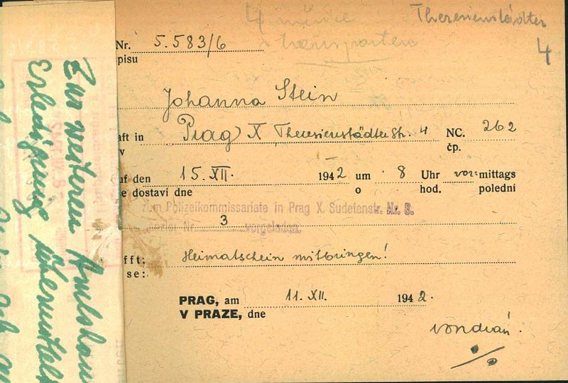 For publication purposes, contact the National Archives in Prague, where the original document is located. The document was digitized by the Terezín Initiative Institute, the Terezín Album project