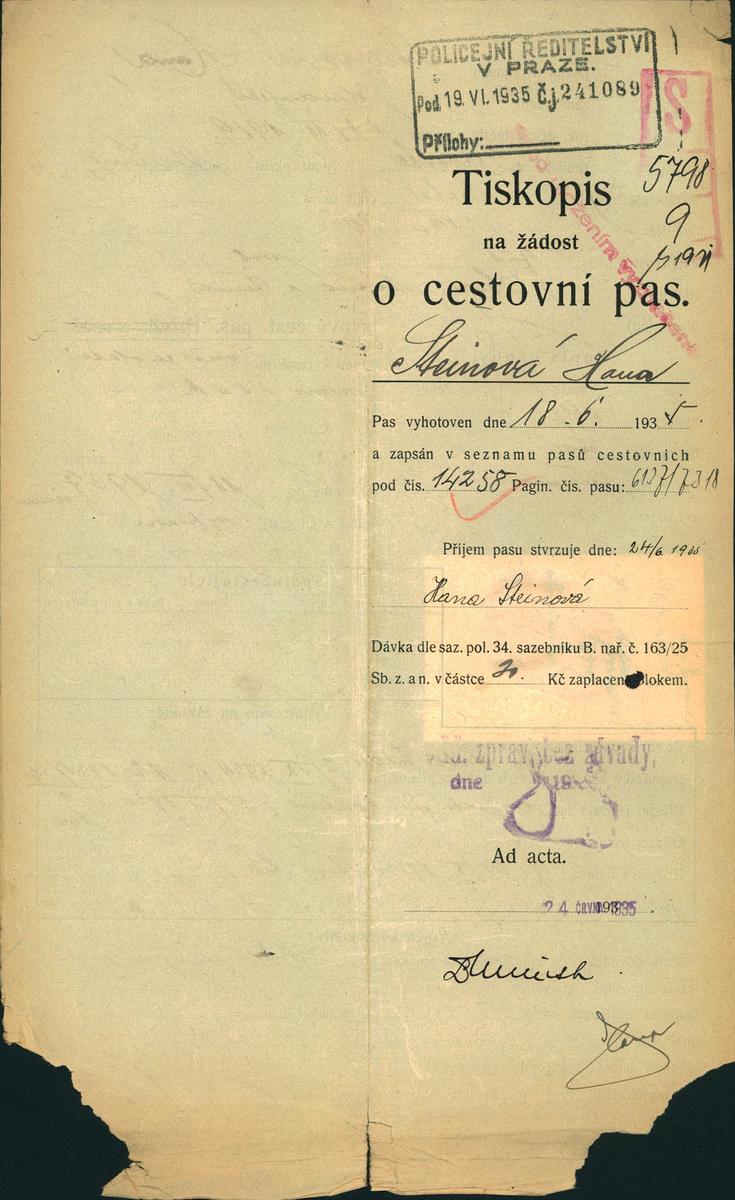 National archives Prague > Police Directorate Prague > 1941-1950 > S > Steinová Hana