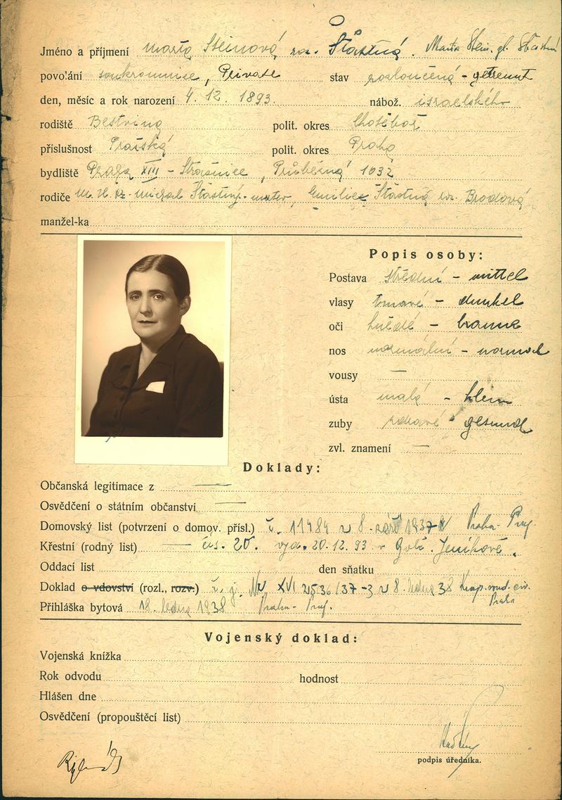 National archives Prague > Police Directorate Prague > 1941-1950 > S > Steinová Marta