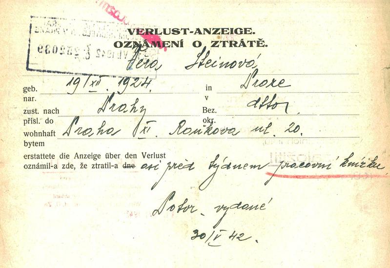 National archives Prague > Police Directorate Prague > 1941-1950 > S > Steinová Věra