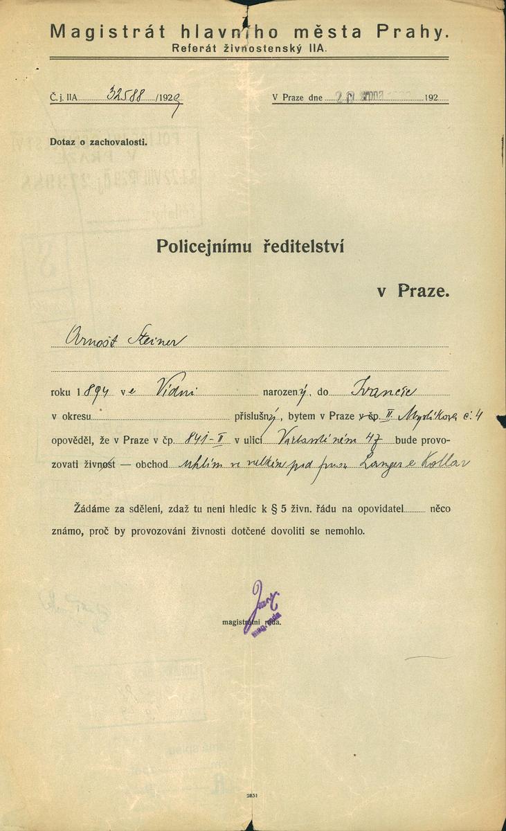 Steiner Arnošt: NEZPRACOVÁNO