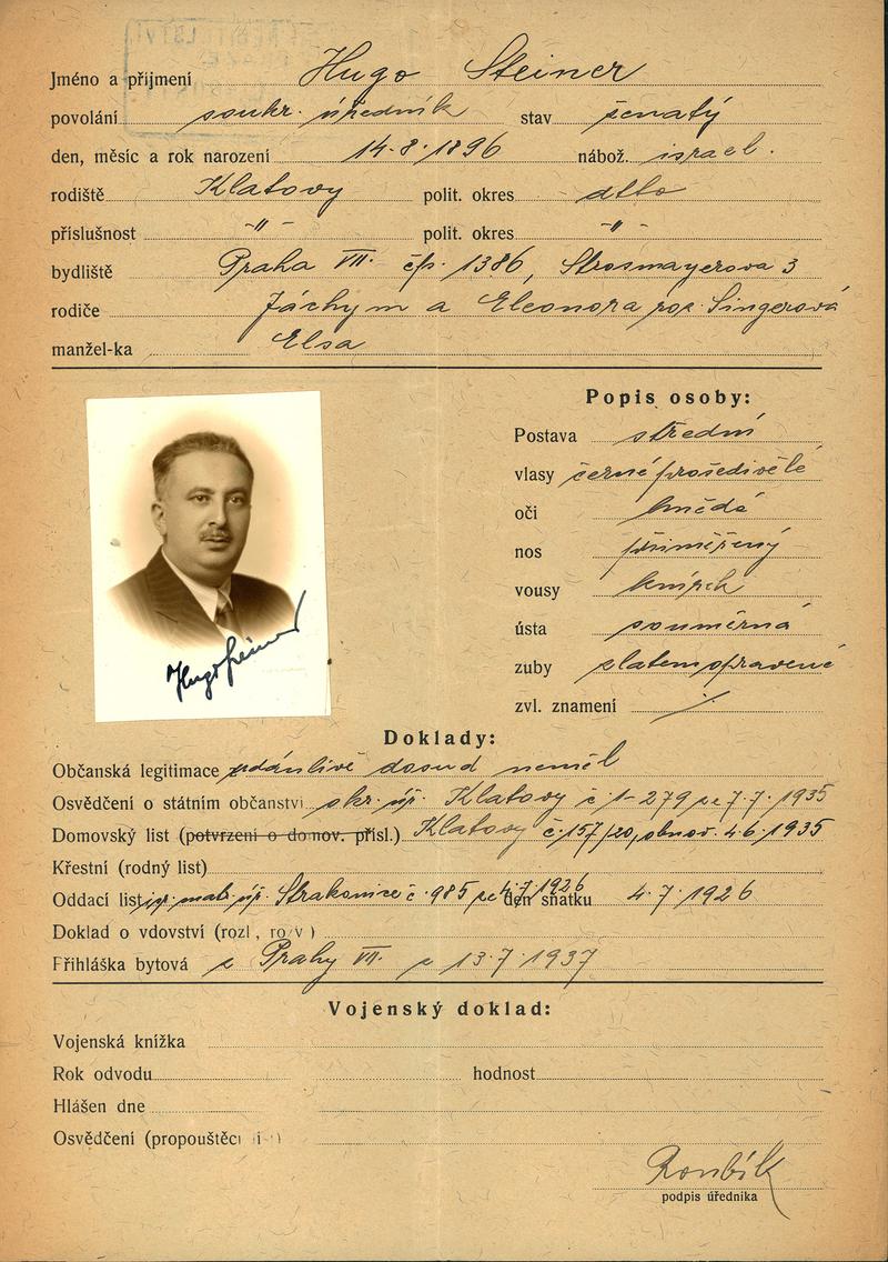National archives Prague > Police Directorate Prague > 1941-1950 > S > Steiner Hugo