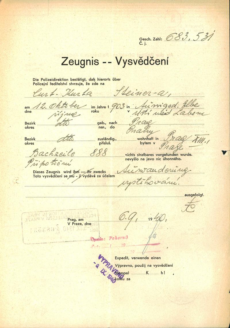 National archives Prague > Police Directorate Prague > 1941-1950 > S > Steiner Kurt