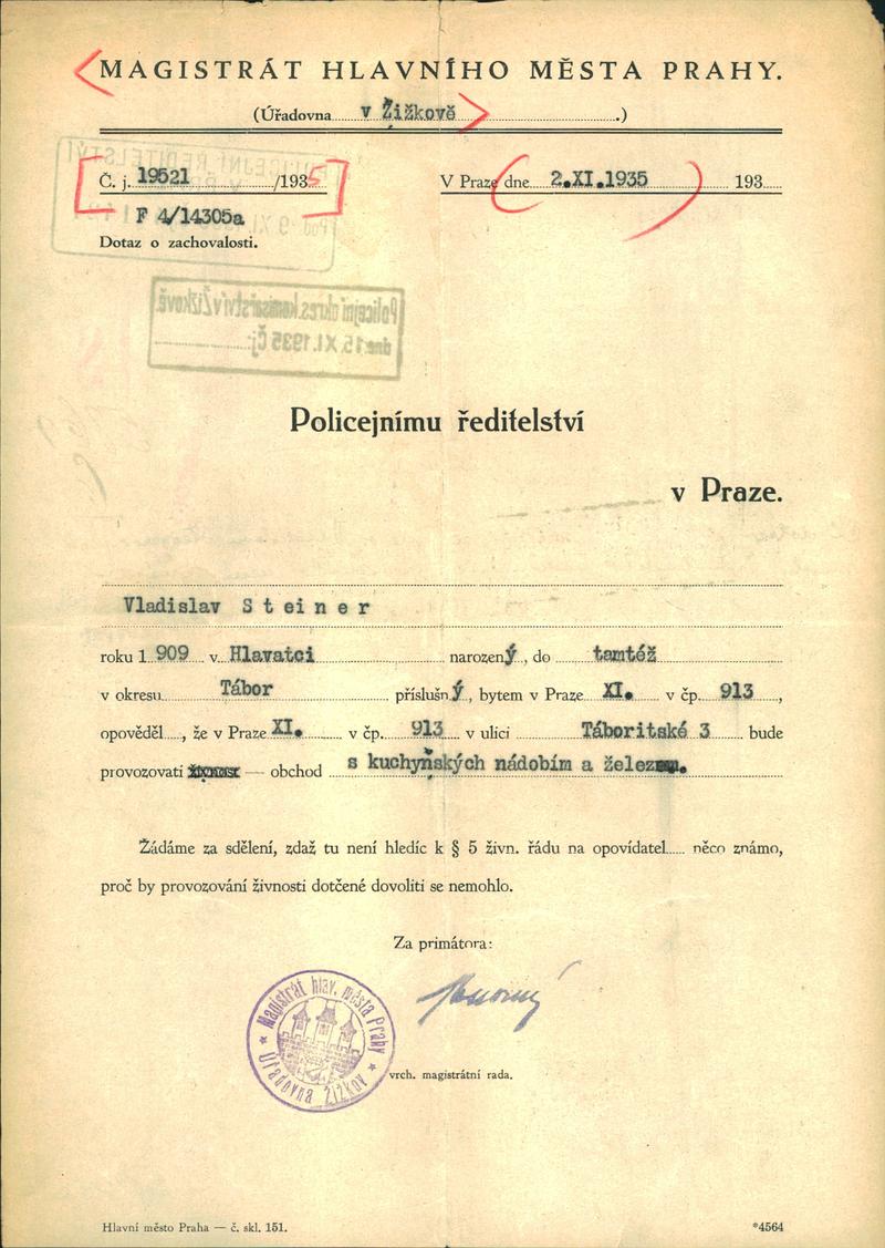 National archives Prague > Police Directorate Prague > 1941-1950 > S > Steiner Vladislav