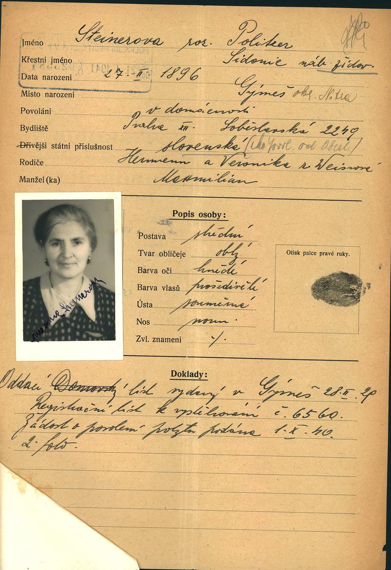 National archives Prague > Police Directorate Prague > 1941-1950 > S > Steinerová Zdenka