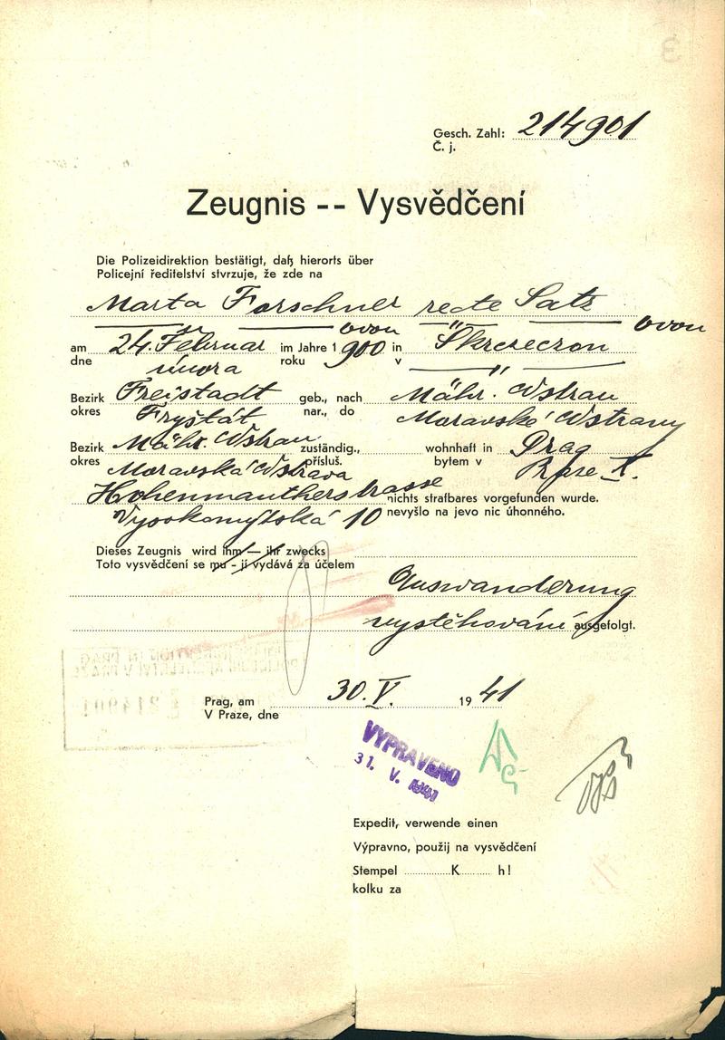 This database contains the names and fates of those who were deported from the territory of today’s Czech Republic, be it their homeland or may they have been deported to the Theresienstadt ghetto before from different european countries. Further, it contains basic information on those men, women and children, most of whom were Roma or Sinti, who died as prisoners of the so-called „Gypsy camp I“ Lety u Písku.
