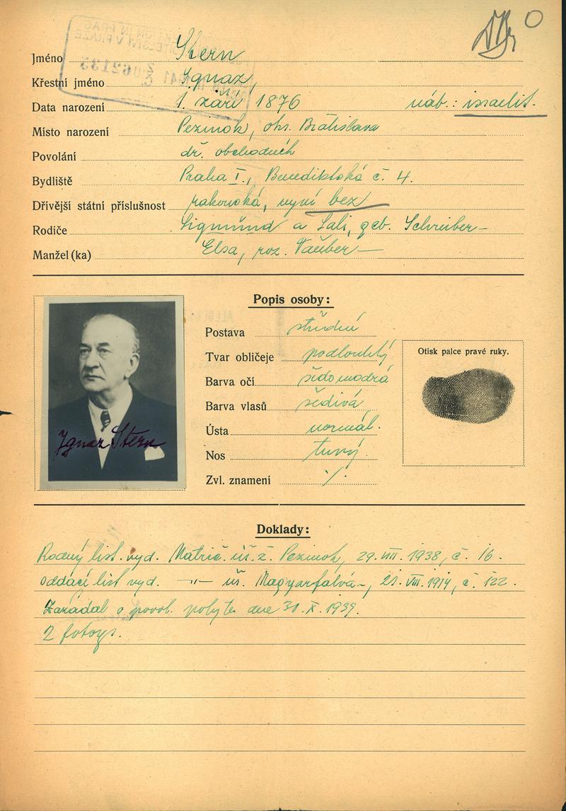 National archives Prague > Police Directorate Prague > 1941-1950 > S > Stern Hynek
