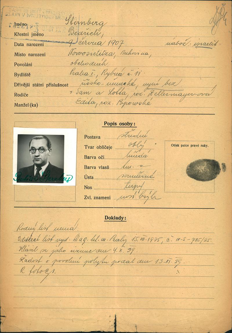 National archives Prague > Police Directorate Prague > 1941-1950 > S > Sternberg Bedřich