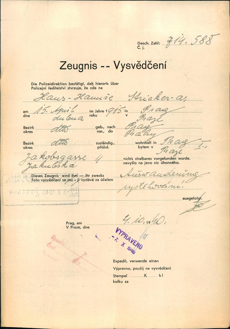 National archives Prague > Police Directorate Prague > 1941-1950 > S > Stricker Hanuš