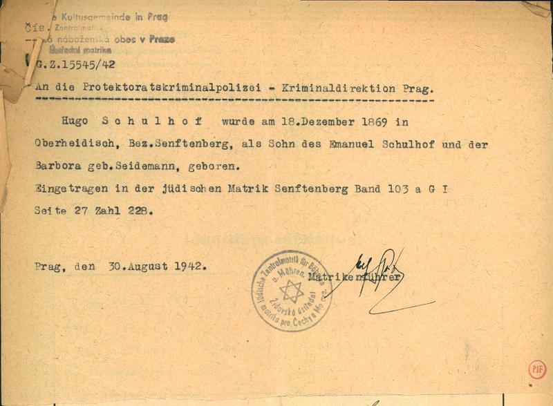 This database contains the names and fates of those who were deported from the territory of today’s Czech Republic, be it their homeland or may they have been deported to the Theresienstadt ghetto before from different european countries. Further, it contains basic information on those men, women and children, most of whom were Roma or Sinti, who died as prisoners of the so-called „Gypsy camp I“ Lety u Písku.
