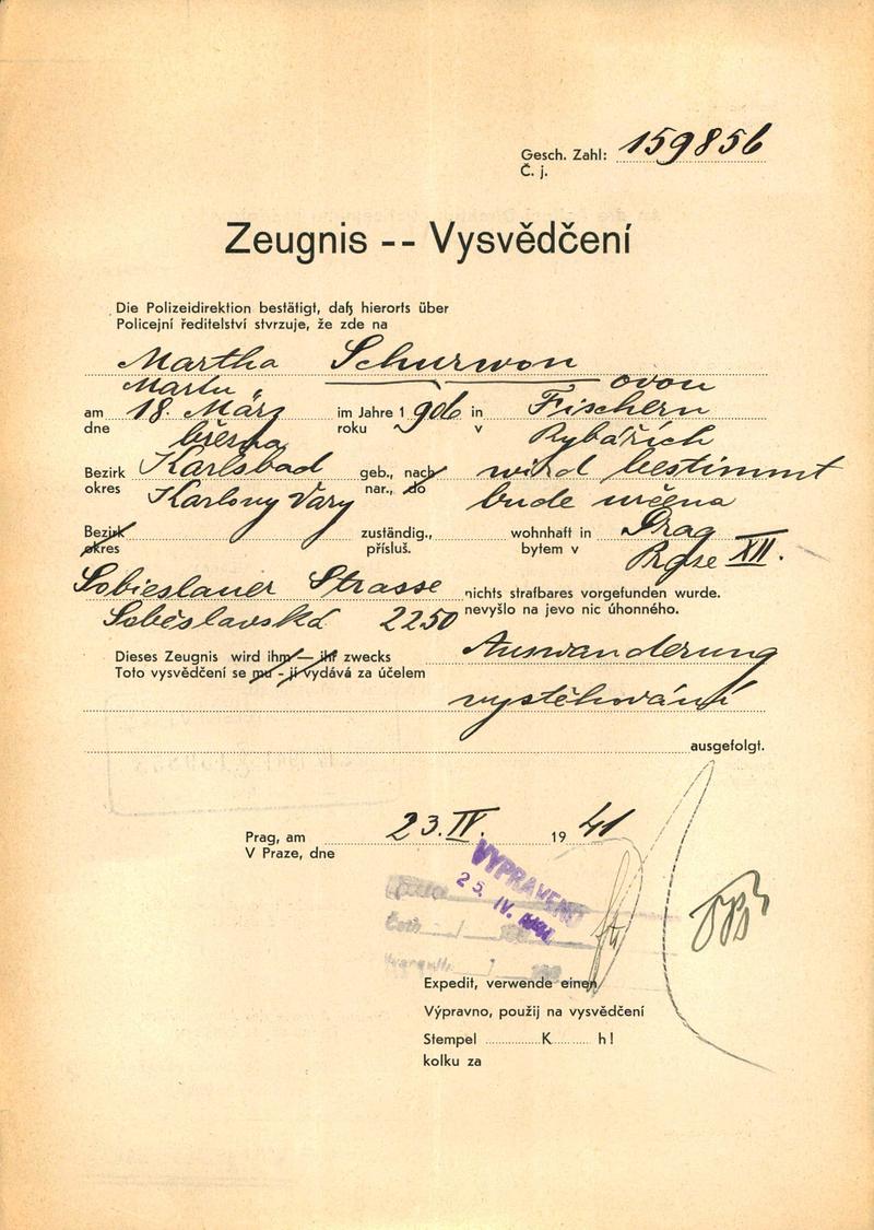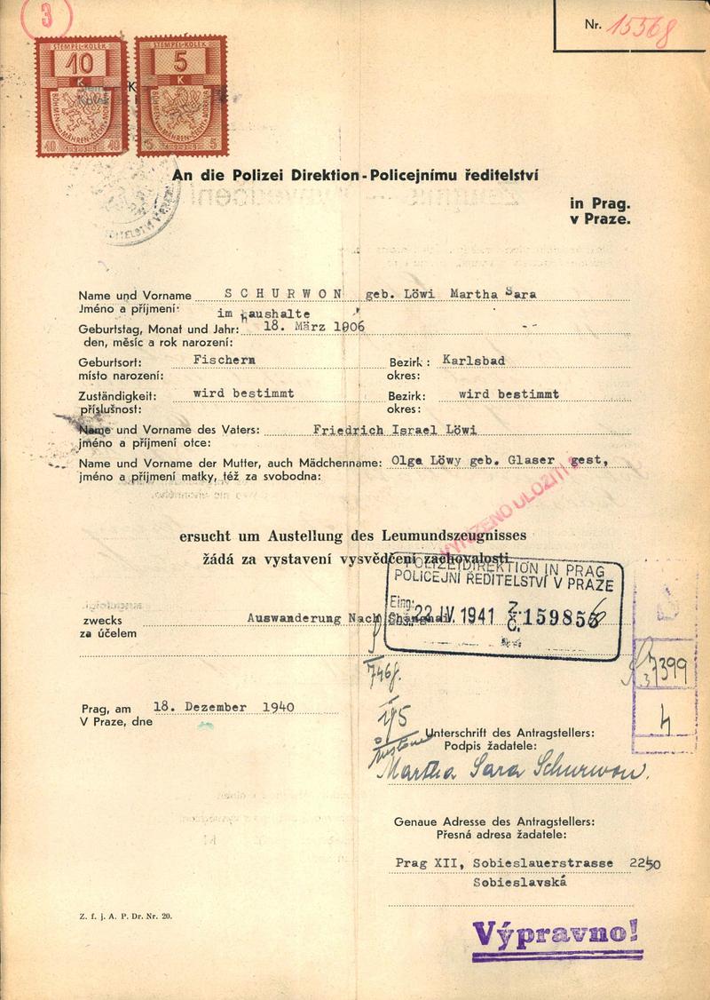 National archives Prague > Police Directorate Prague > 1941-1950 > S > Schurwonová Marta