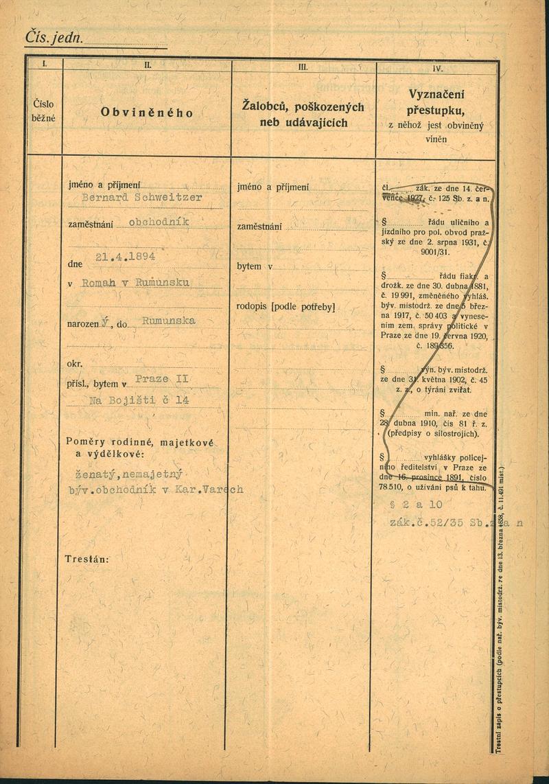 Schweitzer Bernard: NEZPRACOVÁNO