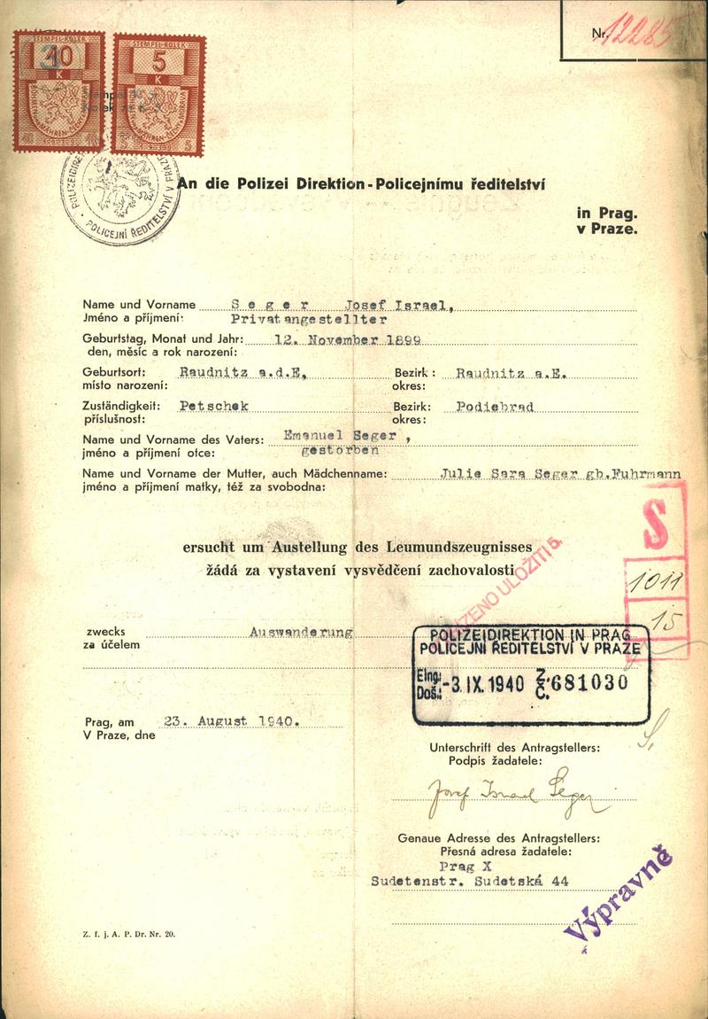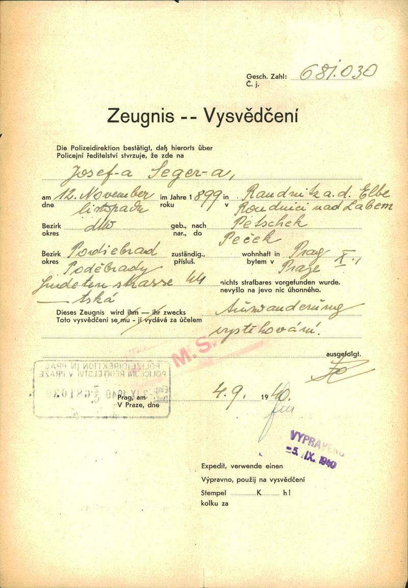 National archives Prague > Police Directorate Prague > 1941-1950 > S > Seger Josef