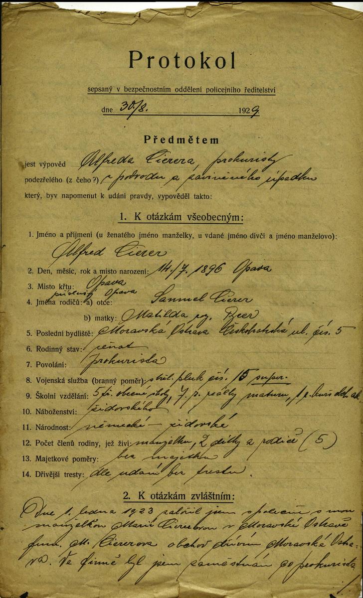 National archives Prague > Police Directorate Prague > 1931-1940 > C > Cierer Alfred