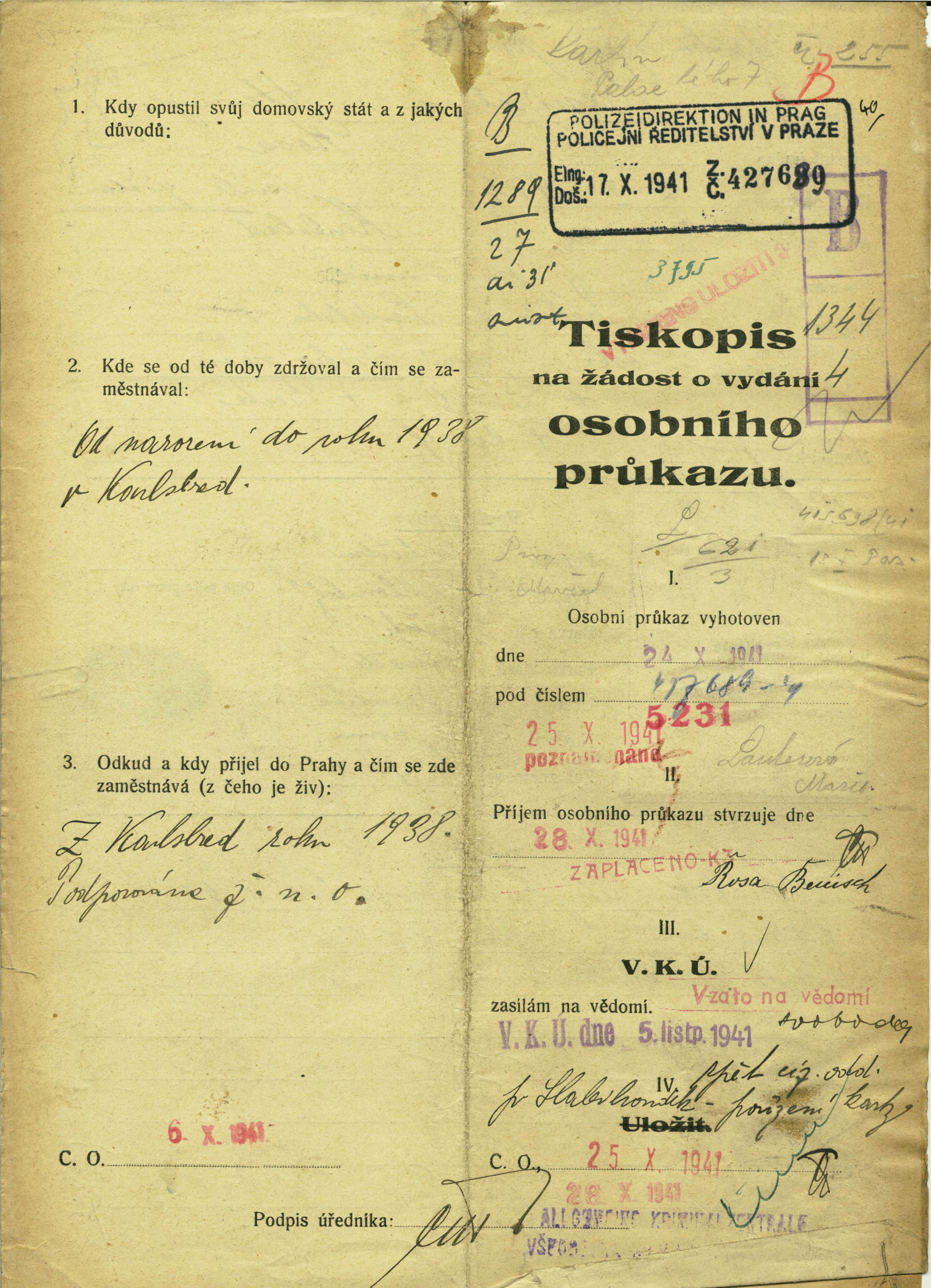 Benischová Růžena: Žádost o vydání občanské legitimace