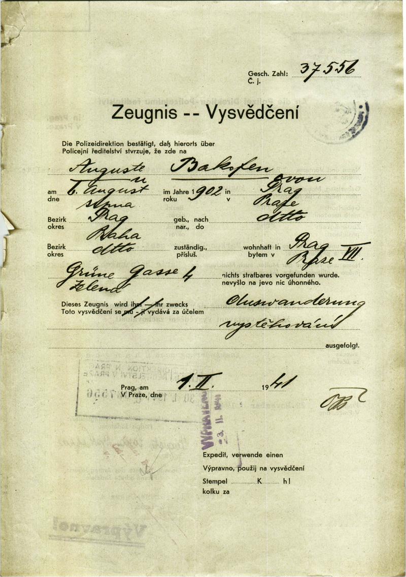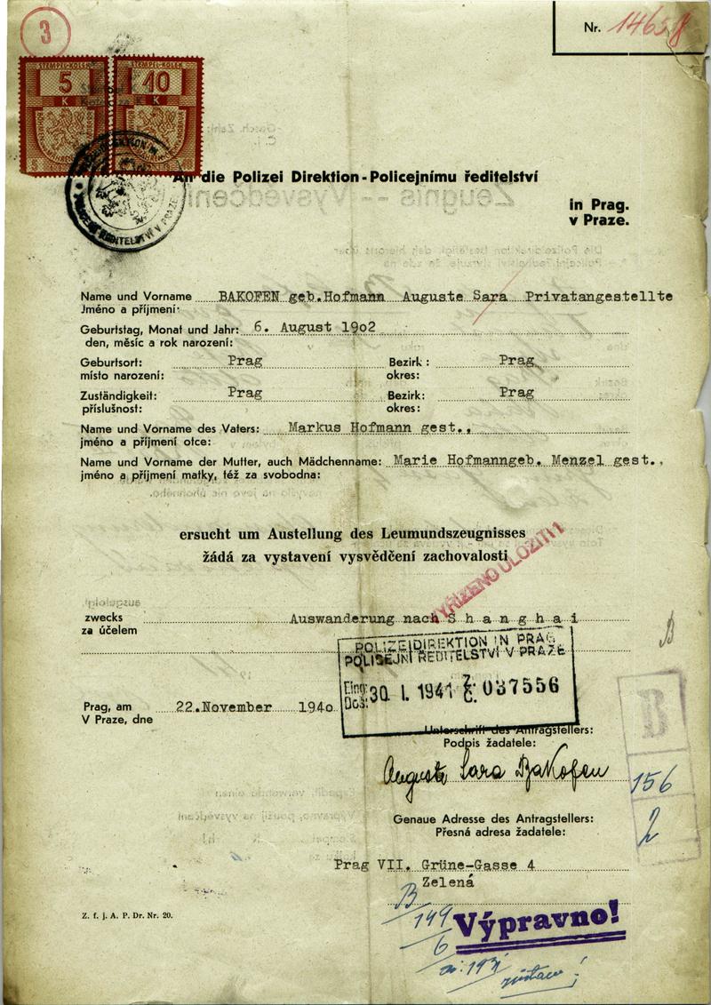 National archives Prague > Police Directorate Prague > 1941-1950 > B > Bakofenová Augusta
