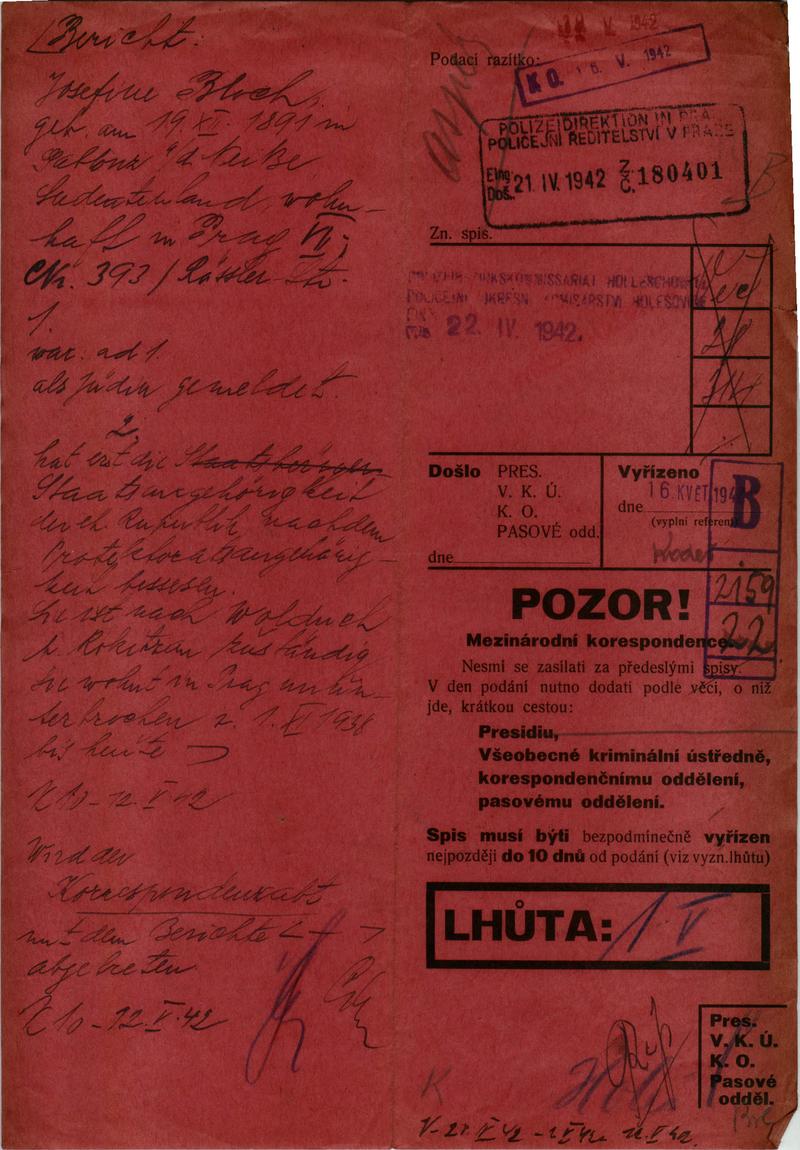 Blochová Josefina: NEZPRACOVÁNO