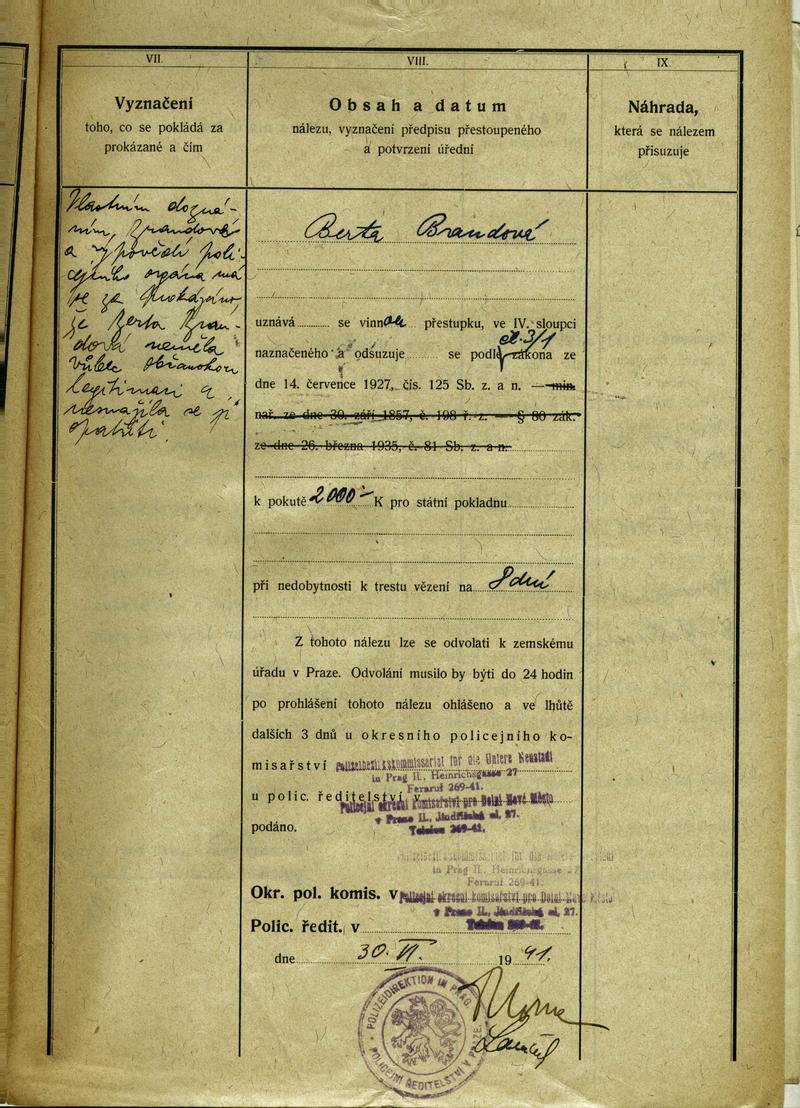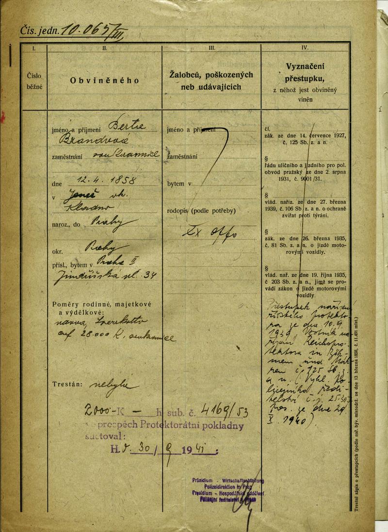 National archives Prague > Police Directorate Prague > 1941-1950 > B > Brandová Berta