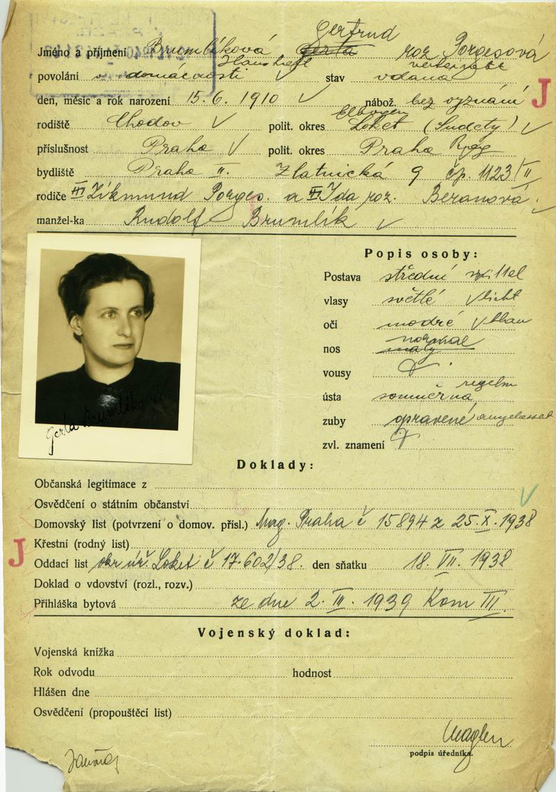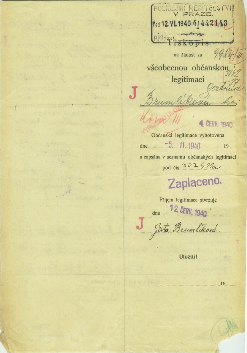 Brumlíková Gerta: Žádost o vydání občanské legitimace
