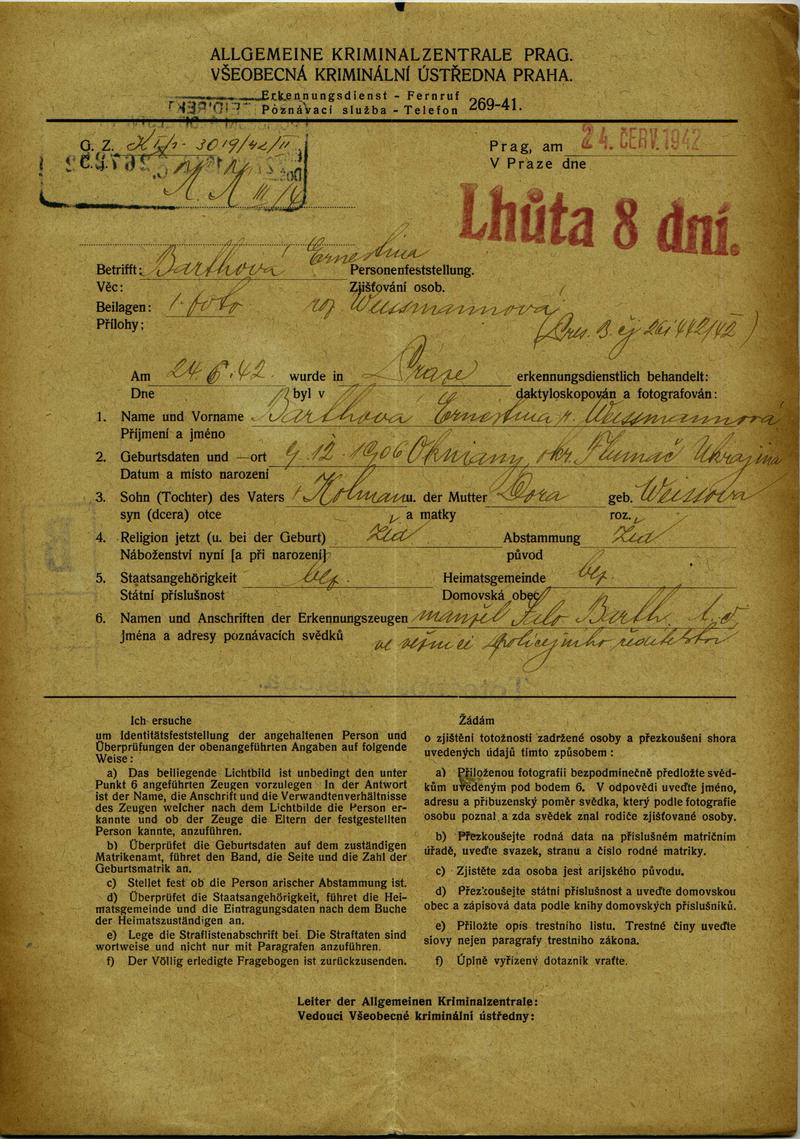 This database contains the names and fates of those who were deported from the territory of today’s Czech Republic, be it their homeland or may they have been deported to the Theresienstadt ghetto before from different european countries. Further, it contains basic information on those men, women and children, most of whom were Roma or Sinti, who died as prisoners of the so-called „Gypsy camp I“ Lety u Písku.