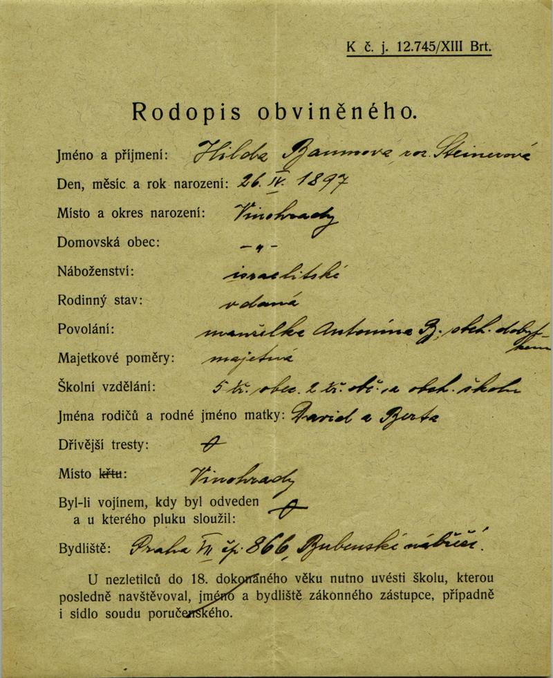National archives Prague > Police Directorate Prague > 1941-1950 > B > Baumová Hilda