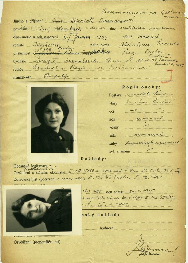 National archives Prague > Police Directorate Prague > 1941-1950 > B > Baumannová Alžběta