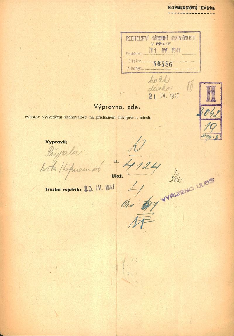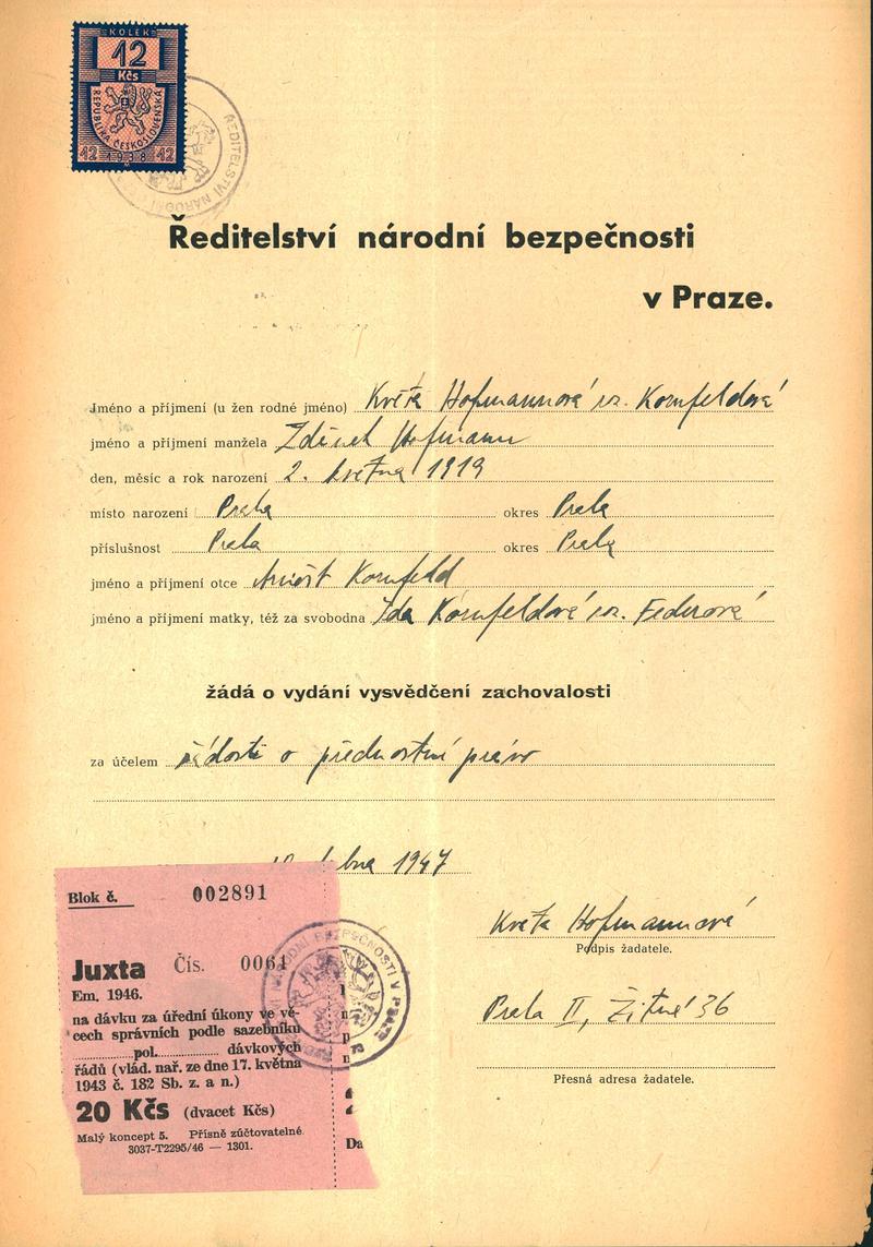 National archives Prague > Police Directorate Prague > 1941-1950 > H > Kornfeldová Květa