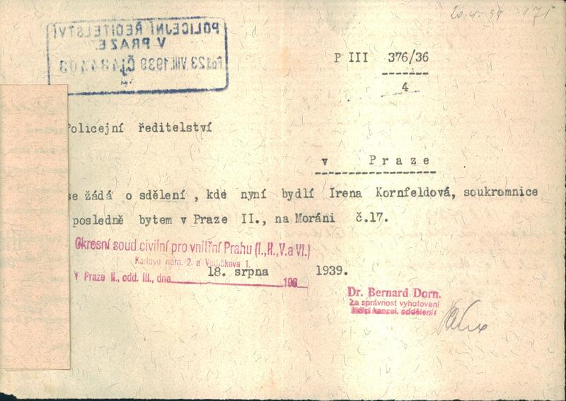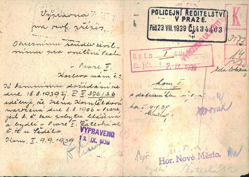 National archives Prague > Police Directorate Prague > 1931-1940 > K > Kornfeldová Irena