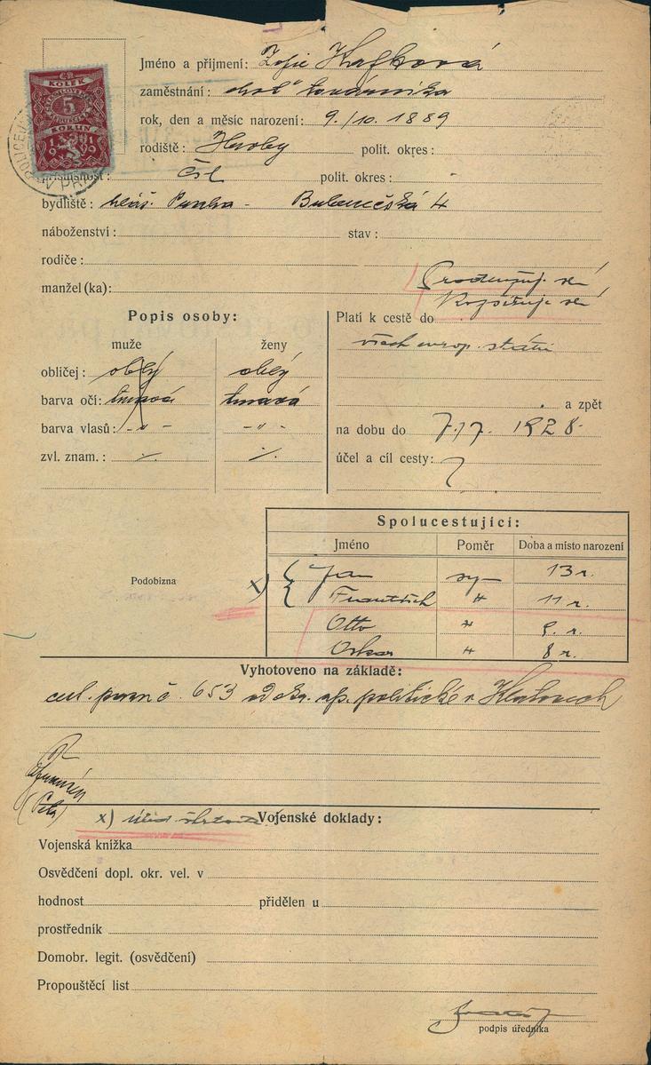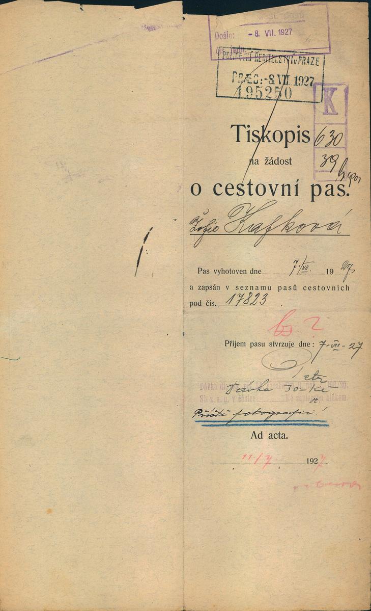 National archives Prague > Police Directorate Prague > 1931-1940 > K > Kafková Žofie