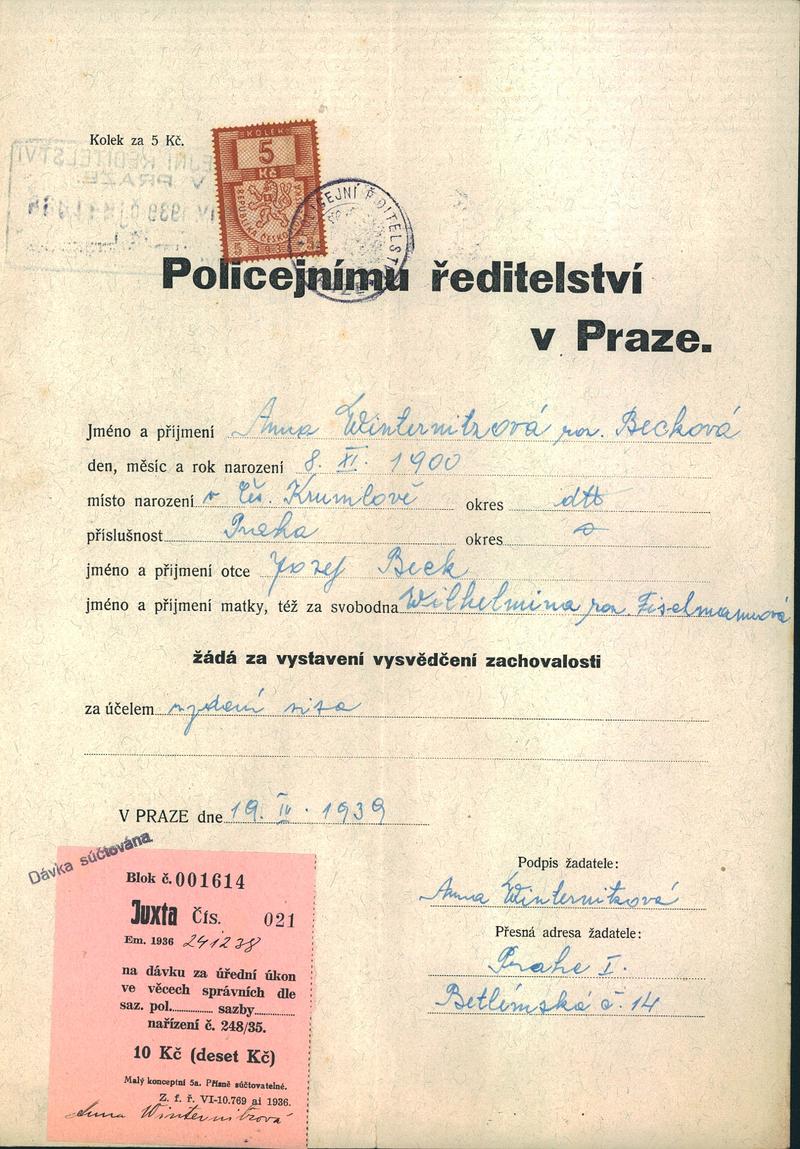 National archives Prague > Police Directorate Prague > 1931-1940 > W > Winternitzová Anna