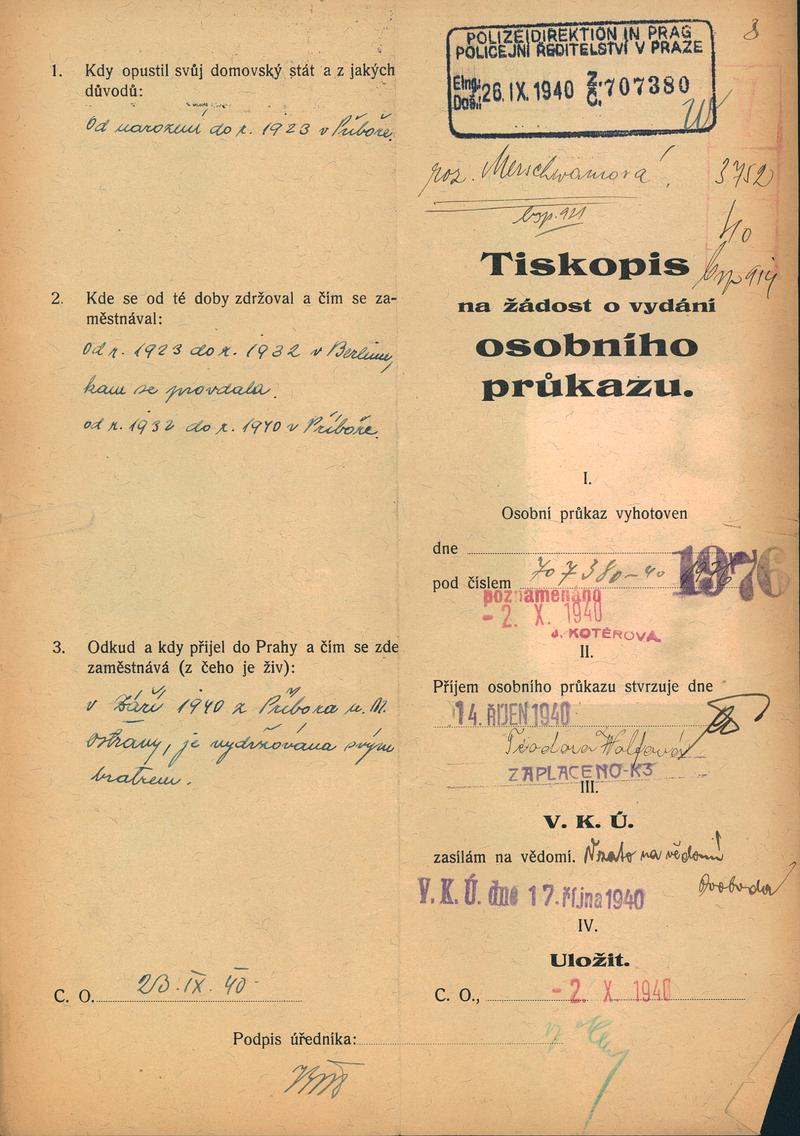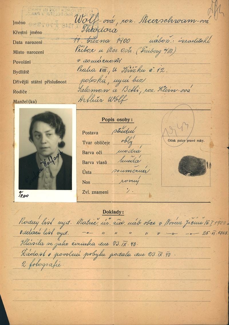 National archives Prague > Police Directorate Prague > 1941-1950 > W > Wolfová Bohdanka