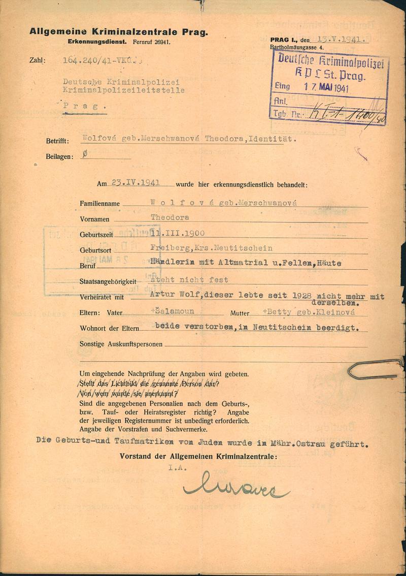 This database contains the names and fates of those who were deported from the territory of today’s Czech Republic, be it their homeland or may they have been deported to the Theresienstadt ghetto before from different european countries. Further, it contains basic information on those men, women and children, most of whom were Roma or Sinti, who died as prisoners of the so-called „Gypsy camp I“ Lety u Písku.