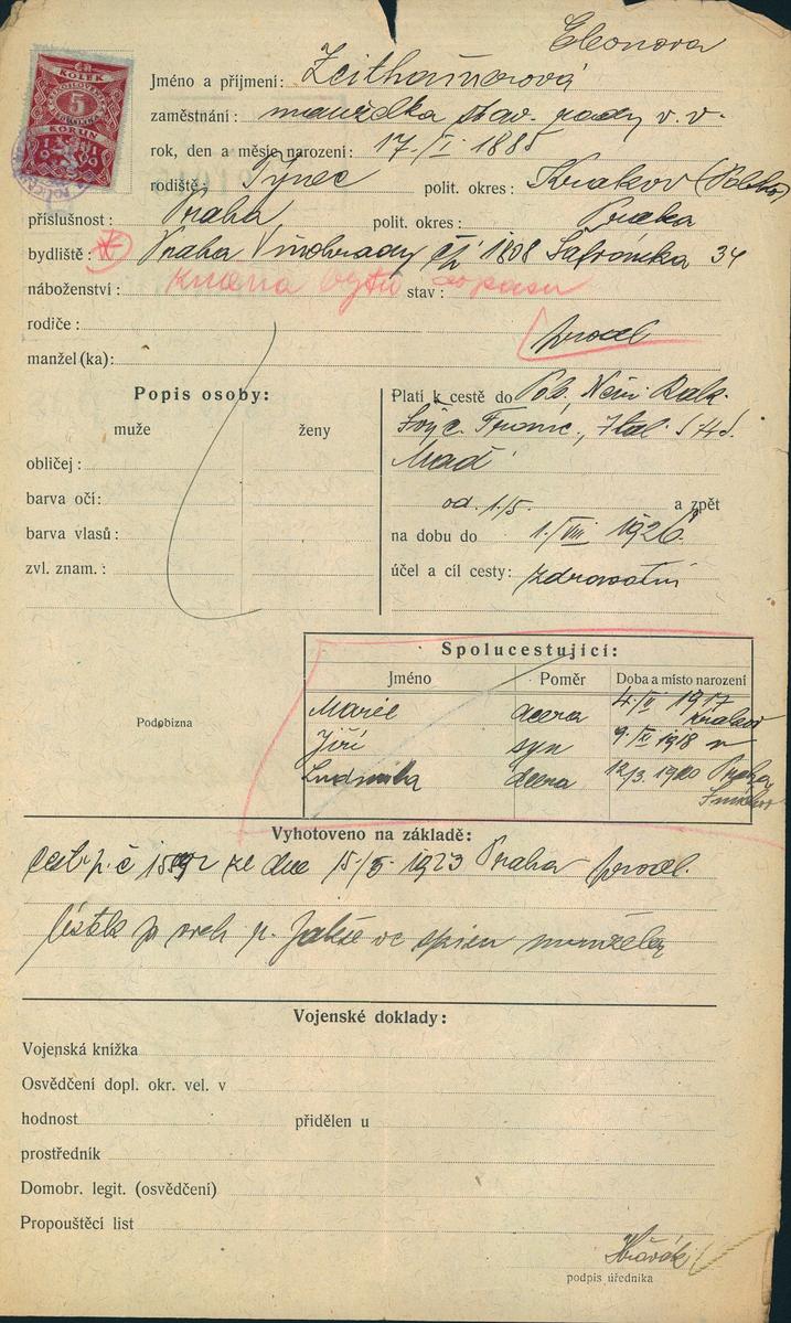 National archives Prague > Police Directorate Prague > 1931-1940 > Z > Zeithammerová Eleonora