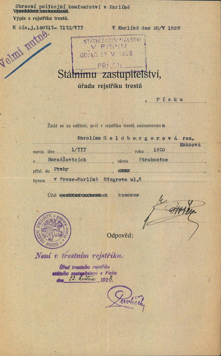 National archives Prague > Police Directorate Prague > 1921-1930 > G > Goldbergerová Karolina