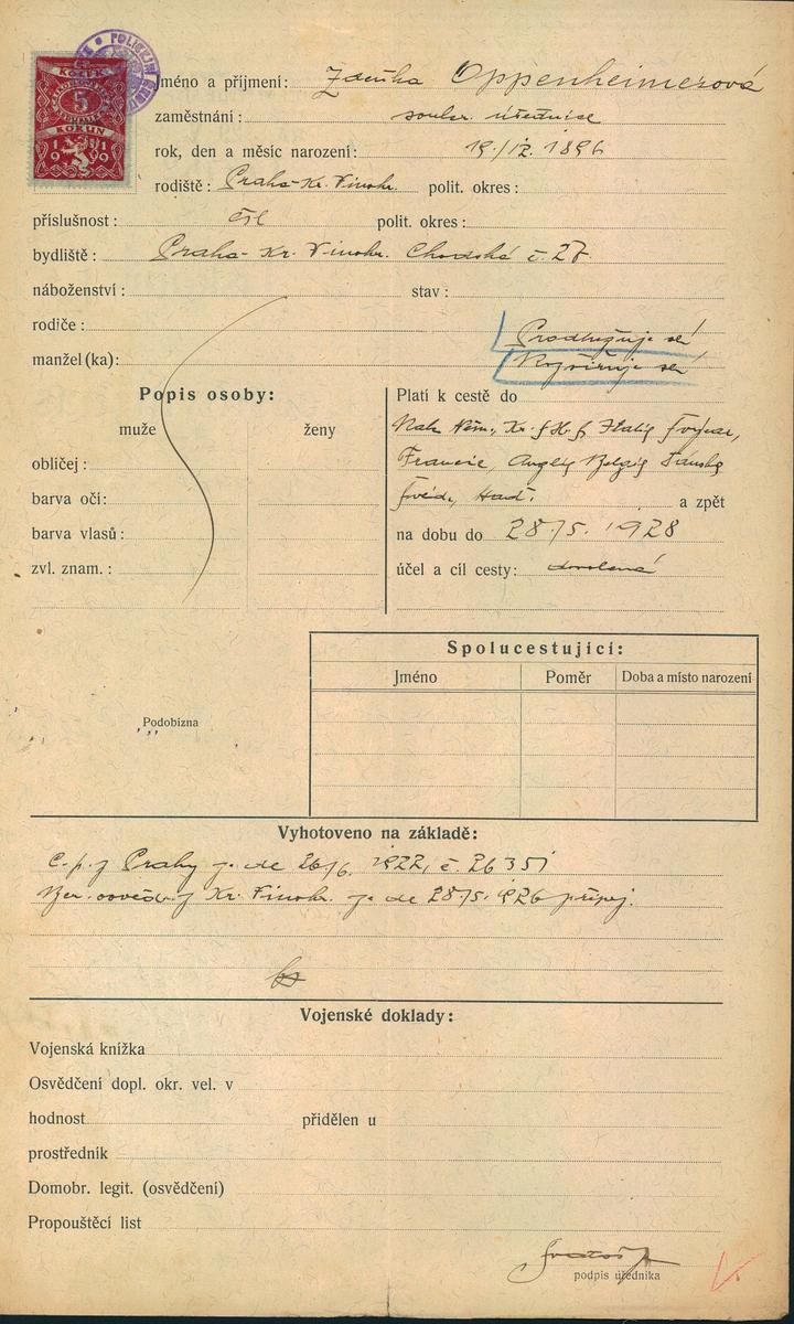 Oppenheimerová Zdeňka: NEZPRACOVÁNO