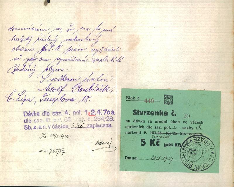 National archives Prague > Police Directorate Prague > 1921-1930 > R > Roubiček Adolf