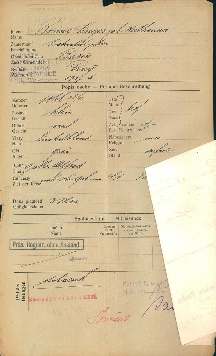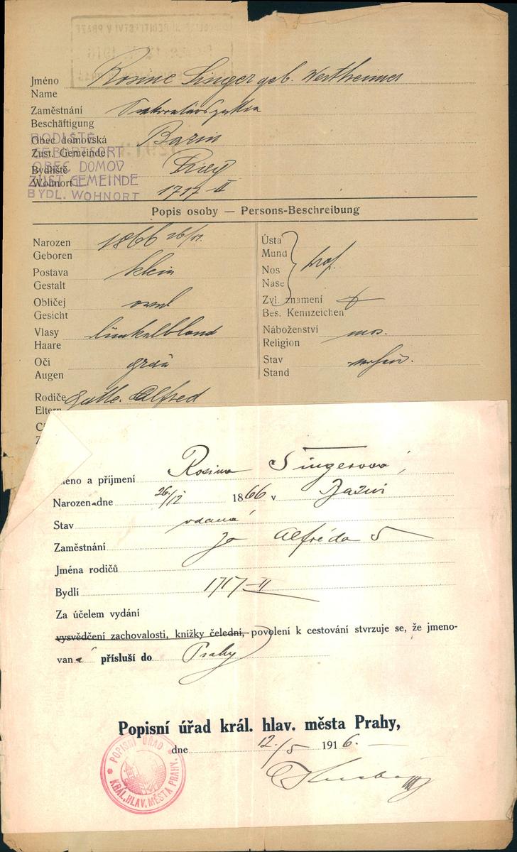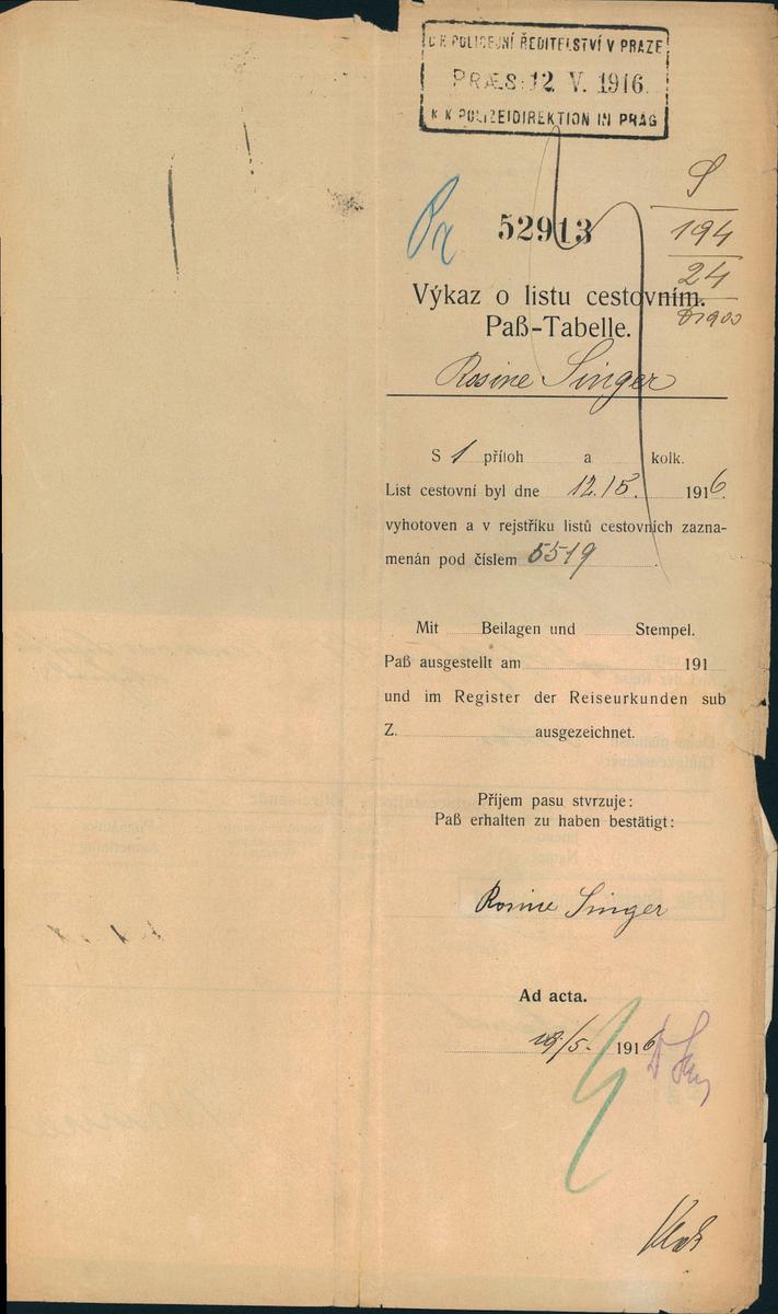 National archives Prague > Police Directorate Prague > 1921-1930 > S > Singerová Rosina