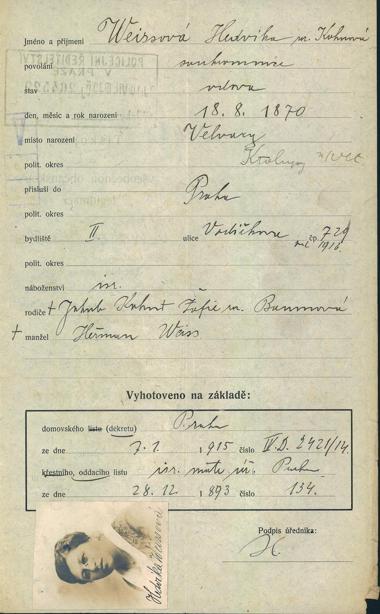 National archives Prague > Police Directorate Prague > 1921-1930 > W > Weissová Hedvika