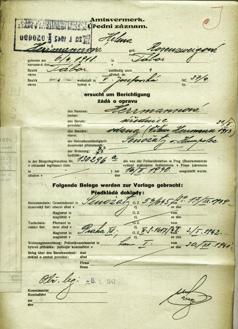 National archives Prague > Police Directorate Prague > 1941-1950 > H > Herrmannová Helena