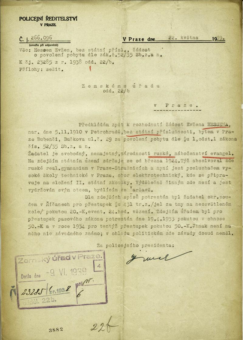National archives Prague > Police Directorate Prague > 1941-1950 > H > Hessen Evžen