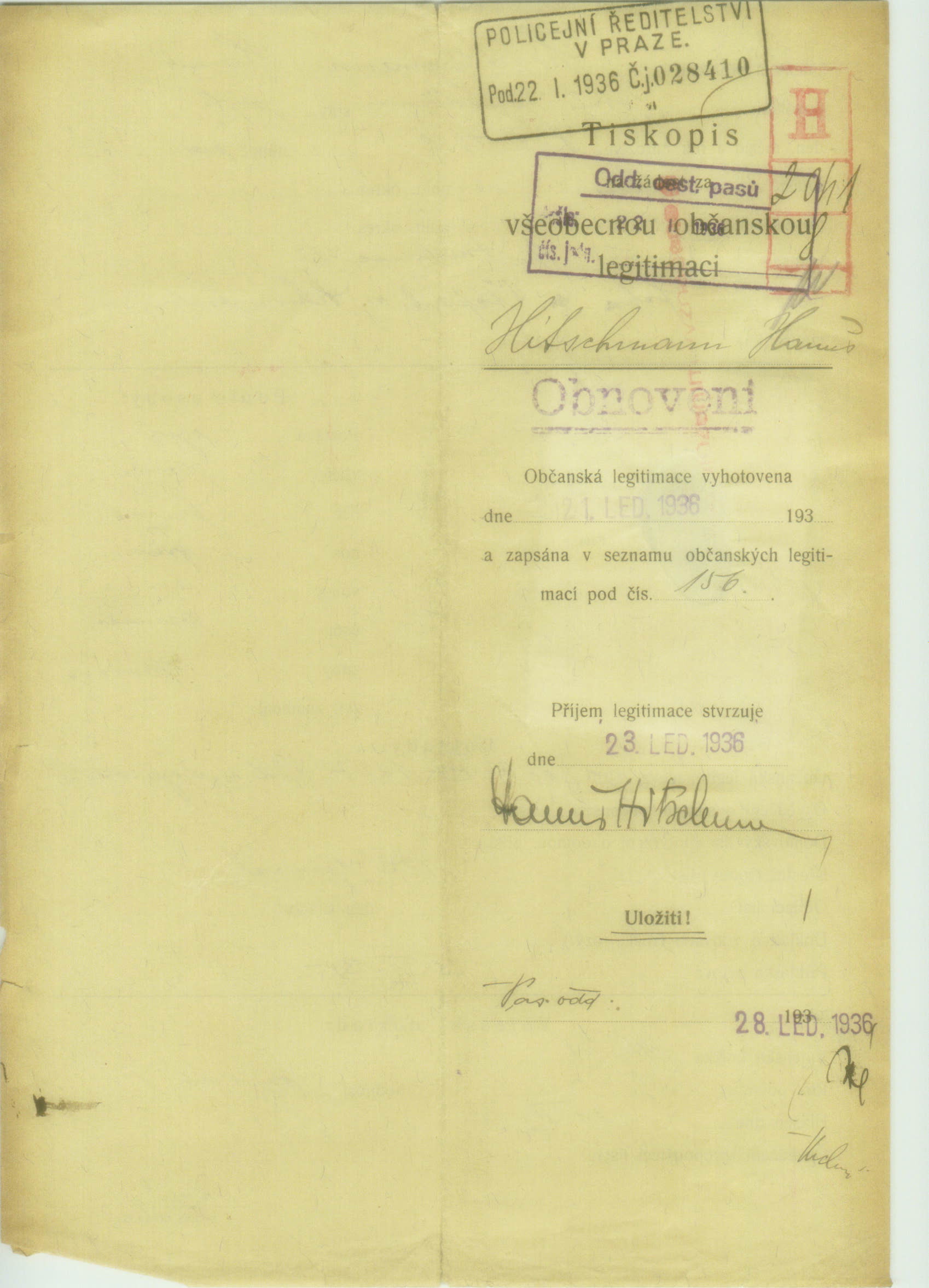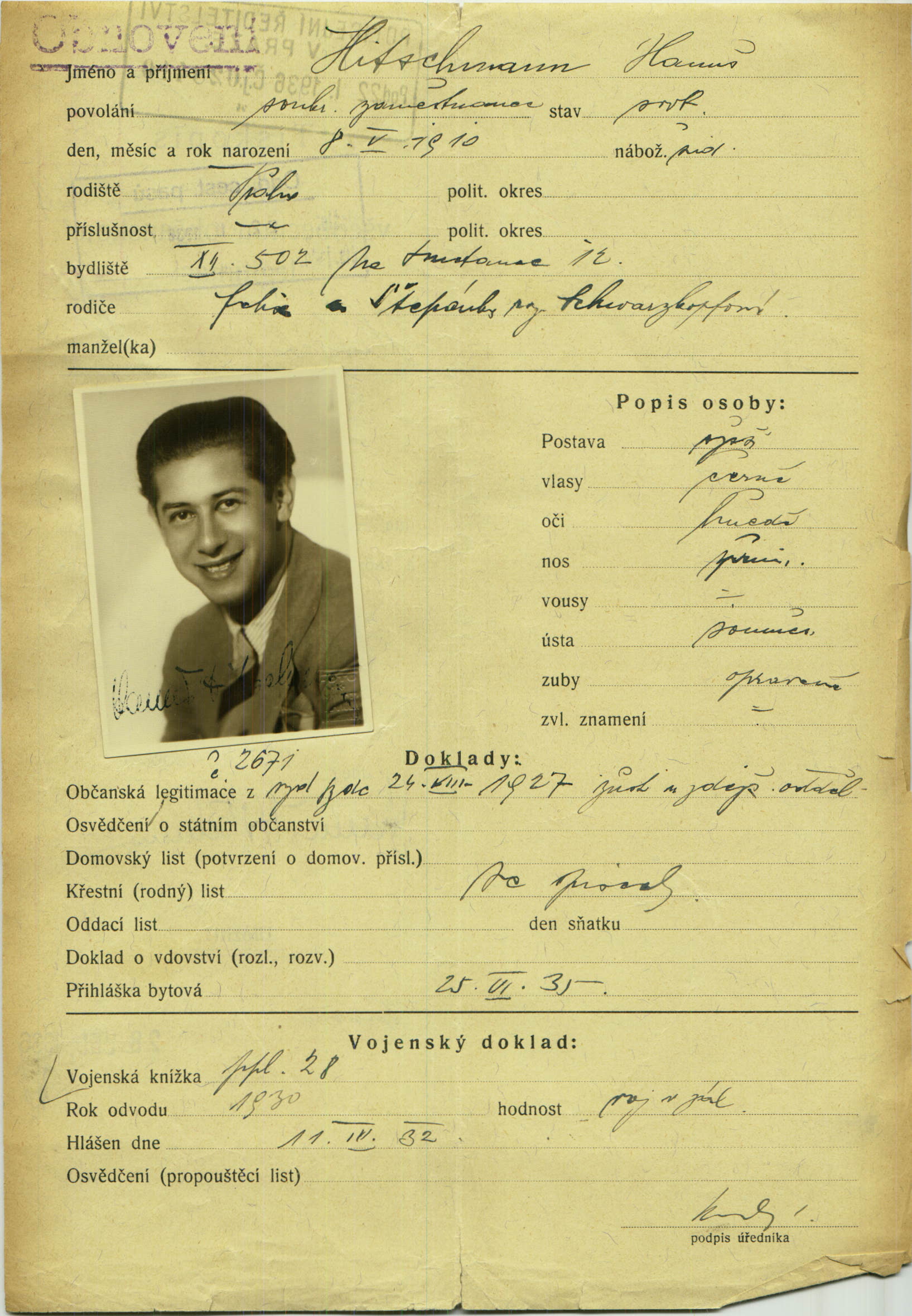 Hitschmann Hanuš: Žádost o vydání občanské legitimace