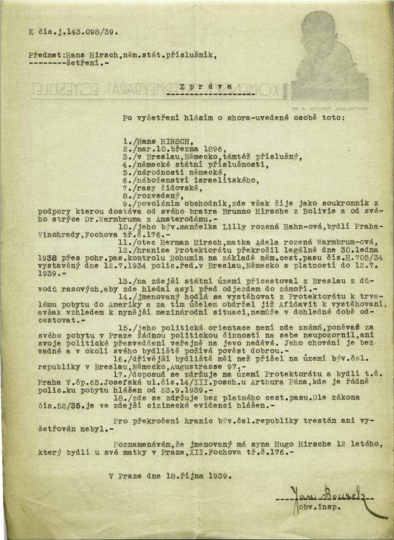 National archives Prague > Police Directorate Prague > 1941-1950 > H > Hirsch Hanuš