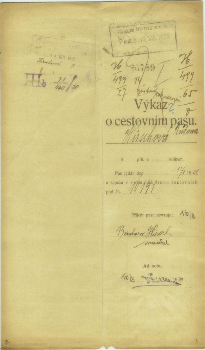 National archives Prague > Police Directorate Prague > 1941-1950 > H > Hirschová Růžena