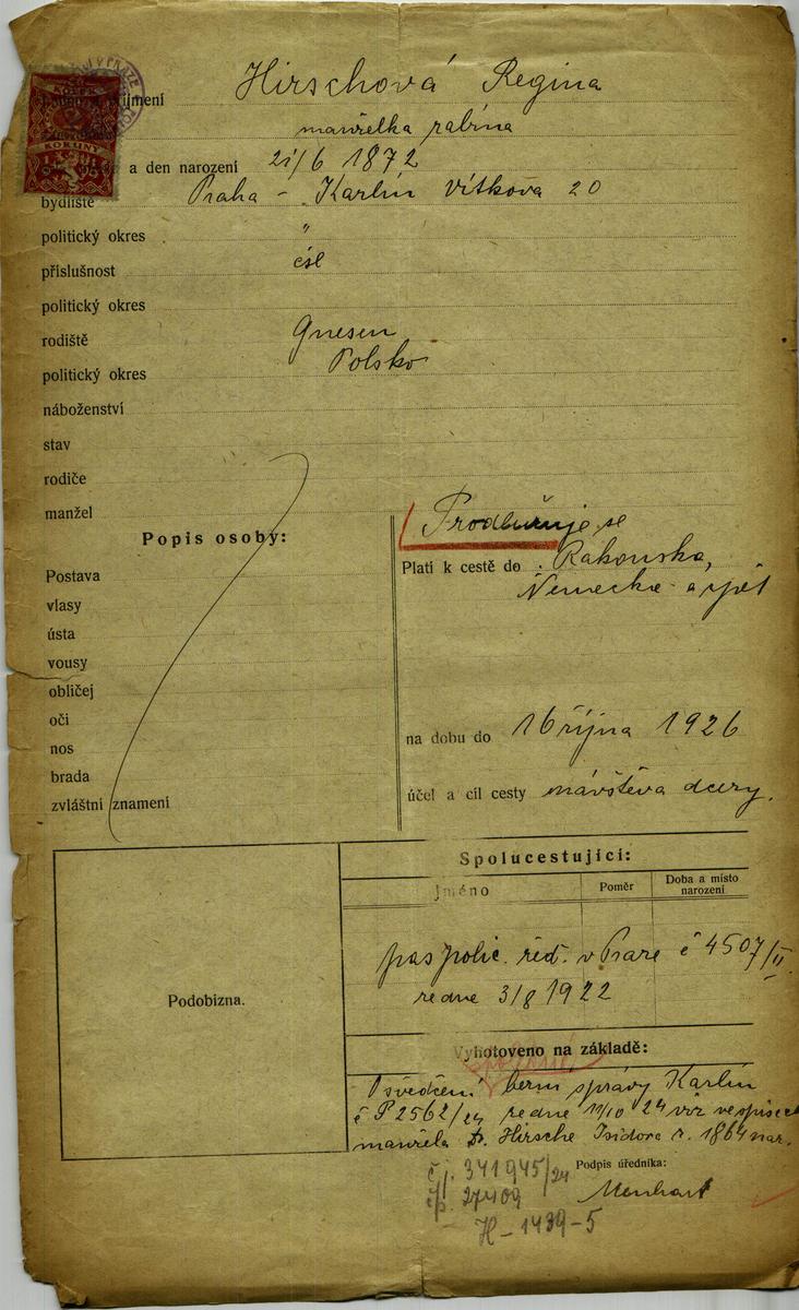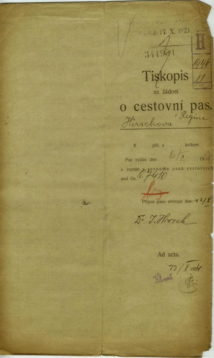 National archives Prague > Police Directorate Prague > 1941-1950 > H > Hirschová Regina