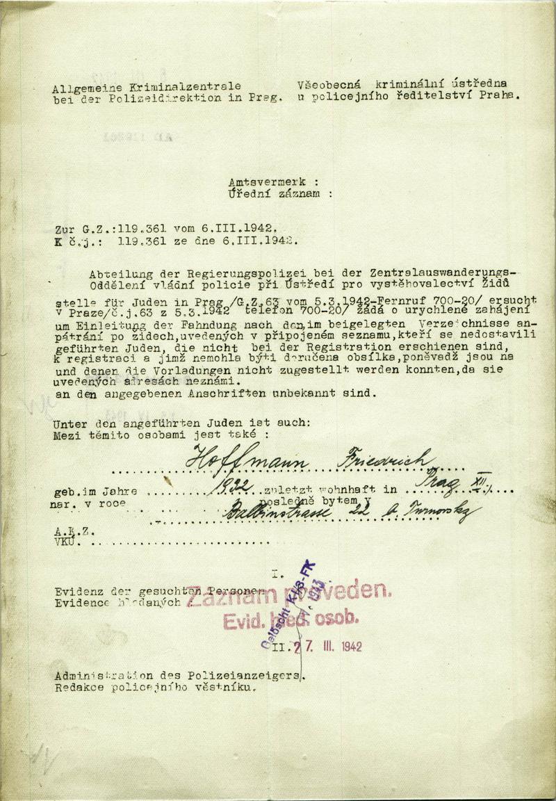 National archives Prague > Police Directorate Prague > 1941-1950 > H > Hoffmann Bedřich