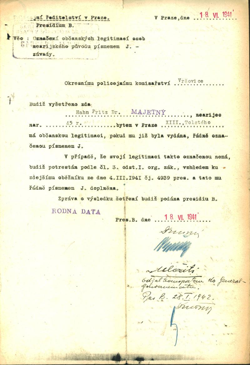 National archives Prague > Police Directorate Prague > 1941-1950 > H > Hahn Bedřich