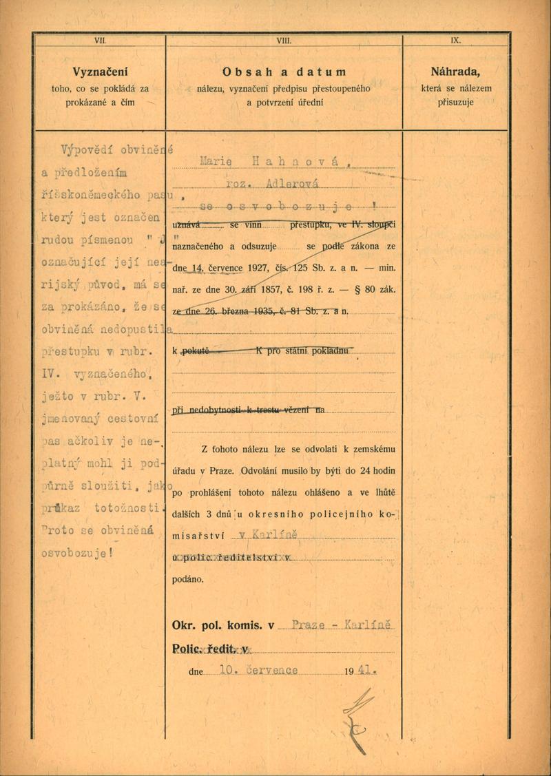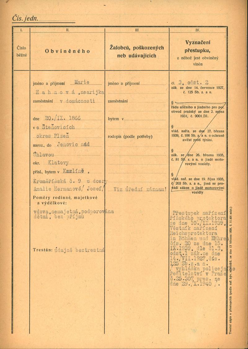 National archives Prague > Police Directorate Prague > 1941-1950 > H > Hahnová Marie