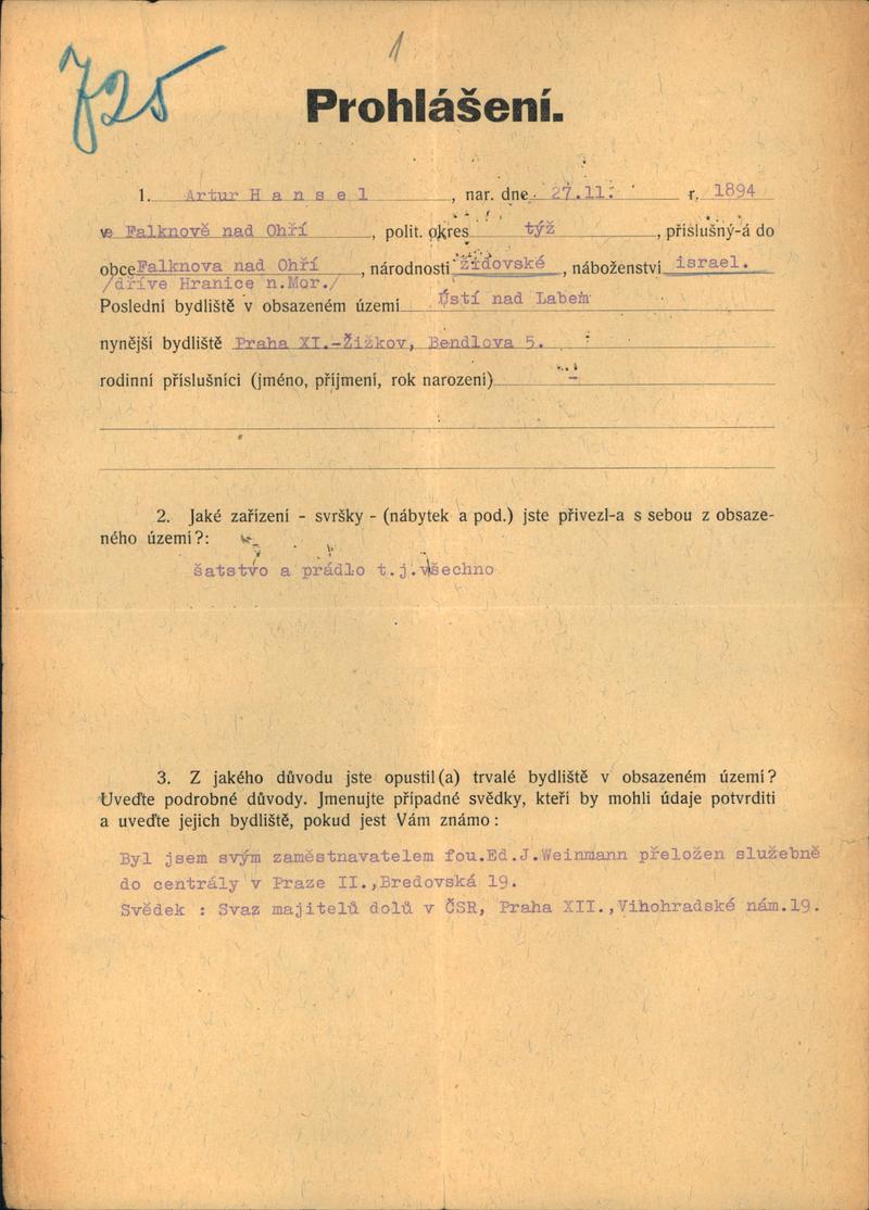 National archives Prague > Police Directorate Prague > 1941-1950 > H > Hansel Artur