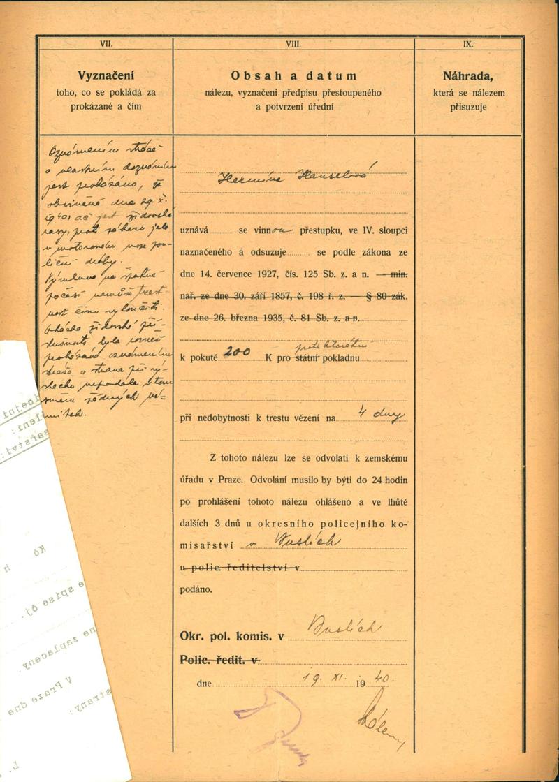 National archives Prague > Police Directorate Prague > 1941-1950 > H > Hanselová Hermína